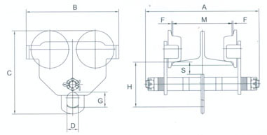 單軌行車是一種結(jié)構(gòu)簡(jiǎn)單、操作方便、輕小型調(diào)運(yùn)配套起重機(jī)械,它可以與手拉葫蘆、環(huán)鏈電動(dòng)葫蘆等起重產(chǎn)品配套組成起重運(yùn)輸小車,自如地運(yùn)行于可以有一定曲率半徑的工字鋼軌道的下翼緣上,用來調(diào)運(yùn)貨物、設(shè)備等。