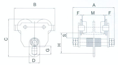 單軌行車是一種結(jié)構(gòu)簡單、操作方便、輕小型調(diào)運配套起重機械,它可以與手拉葫蘆、環(huán)鏈電動葫蘆等起重產(chǎn)品配套組成起重運輸小車,自如地運行于可以有一定曲率半徑的工字鋼軌道的下翼緣上,用來調(diào)運貨物、設(shè)備等。